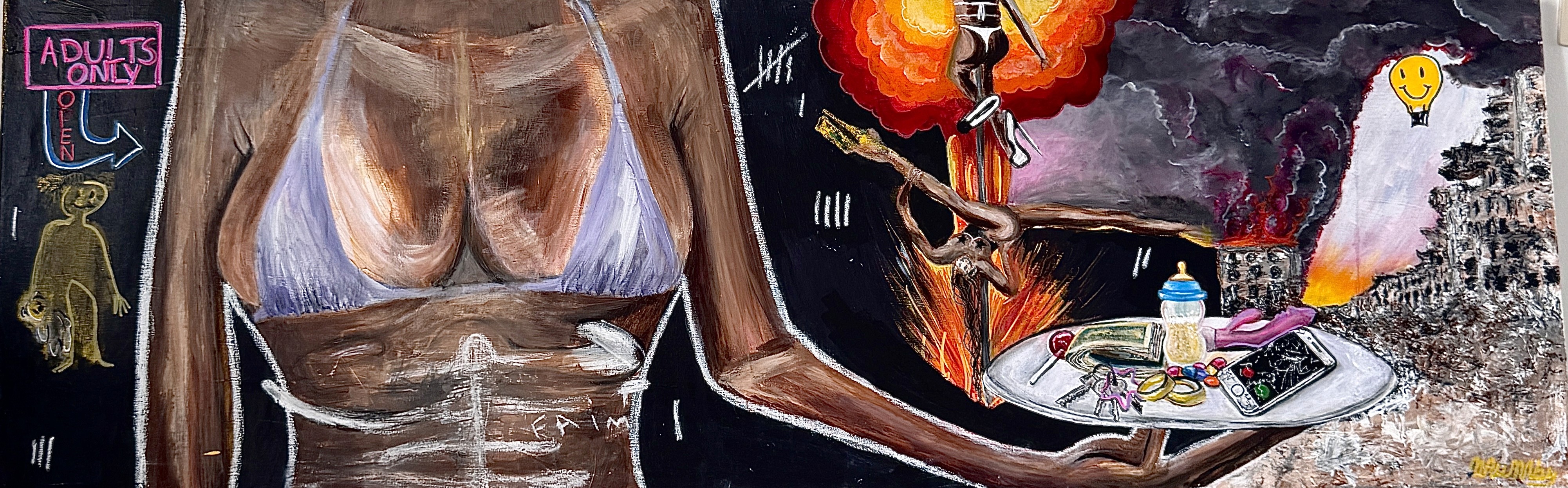 ME VS ME a body of work exploring inner conflict, duality, unlearning codependency, and the search for a sense of home within. Presented in an intimate space hosted by FOFAH, the exhibition marked a turning point in MUMBY’s practice.