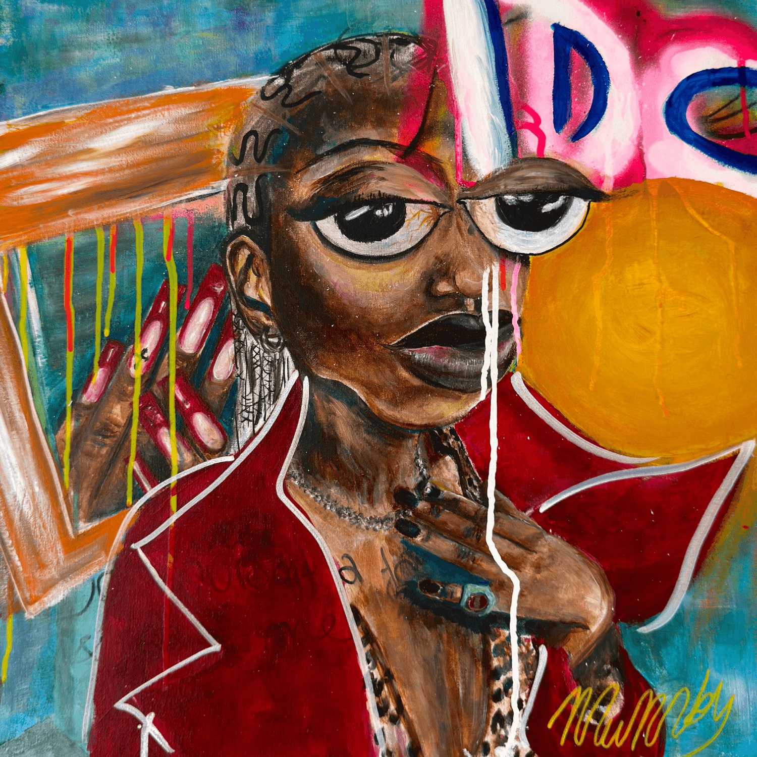 Acrylic, charcoal and pastel on canvas